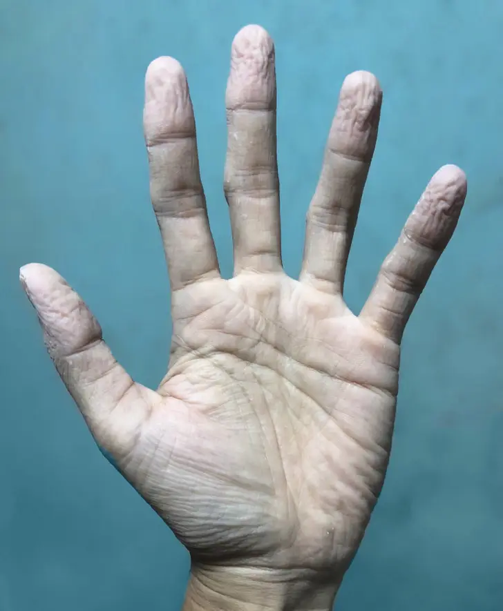 Developing wrinkles on our bodies is a normal, healthy sign of aging, and we usually get pruney fingers when we stay in water for a long period of time. But when our hands start to look more wrinkled and lose elasticity faster than other body parts, it might be your body sending you a warning. Wrinkles on your fingers without any exposure to water can mean dehydration, bad blood circulation, or a problem with your thyroid.